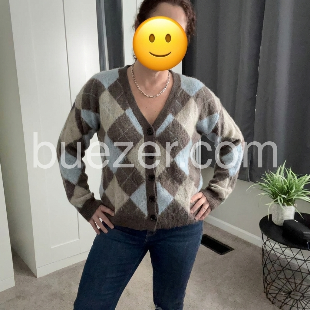 Argyle Geometric Print Cardigan With Button Front In Neutral Tones