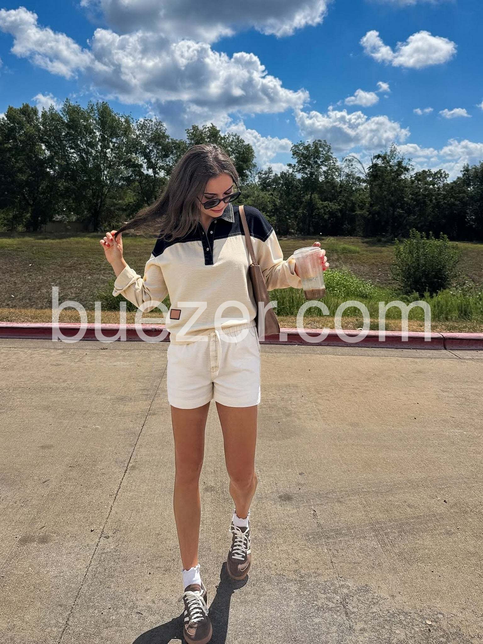 - Neckline: Collared