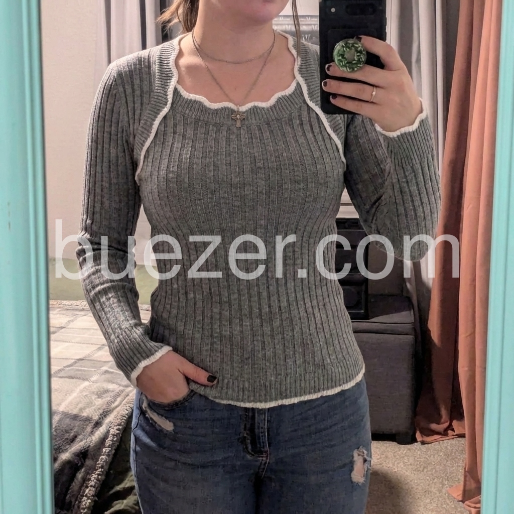 Stay cozy and stylish with our Grey Square Neck Long Sleeve Sweater. Made with high quality materials, this classic sweater offers a snug fit and an elegant square neckline. Enjoy the warmth and comfort of long sleeves, while looking effortlessly chic. Perfect for any occasion, this sweater is a must-have for your wardrobe.