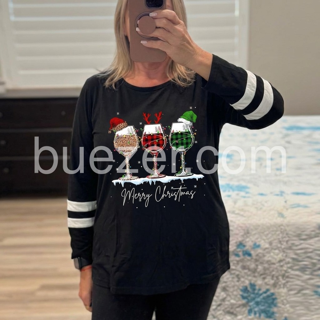 This fashionable top features a classic round neck and flattering 3/4 length sleeves designed to complement any look. Crafted from soft, lightweight fabric for added comfort, the unique and bold print adds a statement-making edge. Perfect for day or night, the stunning black top is sure to elevate your wardrobe.