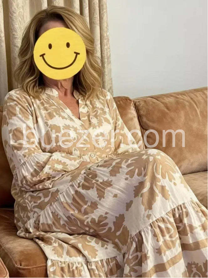 This elegant maxi dress features an attractive v-neck and 3/4 sleeves, making it a versatile and stylish addition to any wardrobe. The timeless design and flattering silhouette make it perfect for any occasion. Crafted with high-quality materials, it provides both comfort and style.