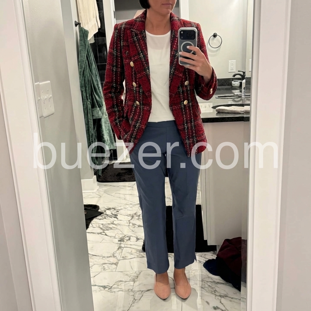 Upgrade your wardrobe with this Red Long Sleeve Check Blazer. This stylish blazer features a bold red color and a classic check print, perfect for making a statement. Crafted with long sleeves, it offers comfort and style all day long. Elevate your look with this versatile piece.