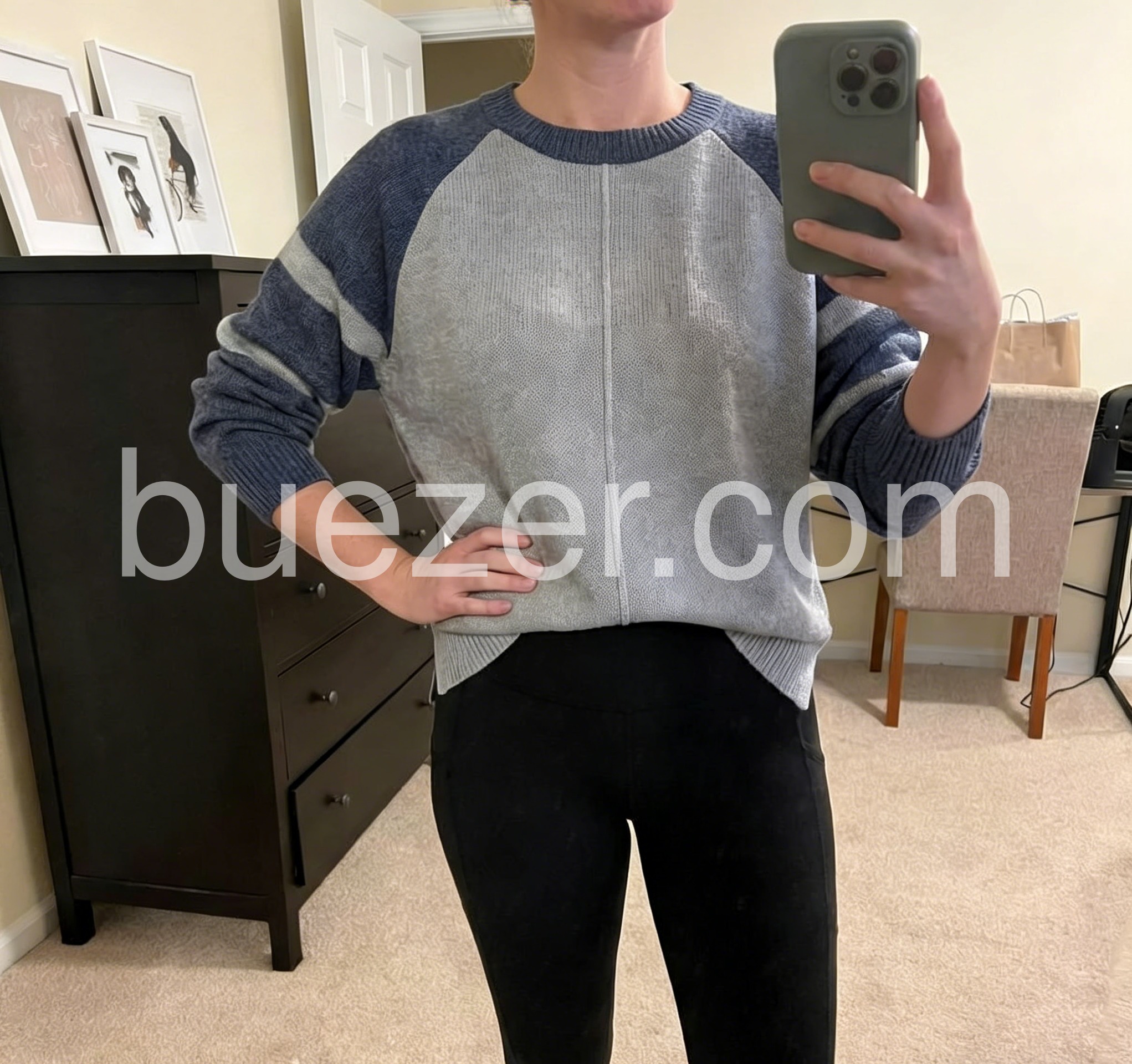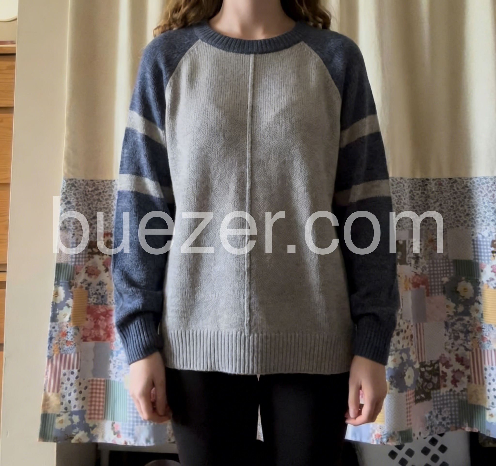 This expertly crafted sweater features a stylish color block print and a comfortable round neck. Its long sleeves provide warmth and versatility, making it a perfect addition to any wardrobe. Stay fashionable and cozy with this must-have piece.